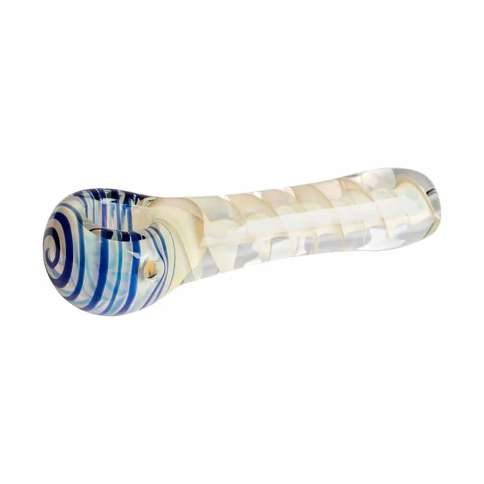 The Corkscrew Inside-Out Hand Pipe from Red Eye Glass® features a twisting pattern with a hypnotic design at the front of the bowl. These pipes are made of 100% borosilicate glass.