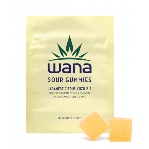 Wana Japanese Citrus Yuzu Hybrid 2:1 Gummies combines hints of distinct acidity and unique sweetness inspired by this rare Asian fruit. These gummies are created with a handcrafted recipe made with pectin, not gelatin, creating a shelf-stable gummy that doesn't melt. Each package contains a 2:1 ratio of CBD:THC, with 10mg CBD and 5mg THC per gummy. Two gummies per pack.
